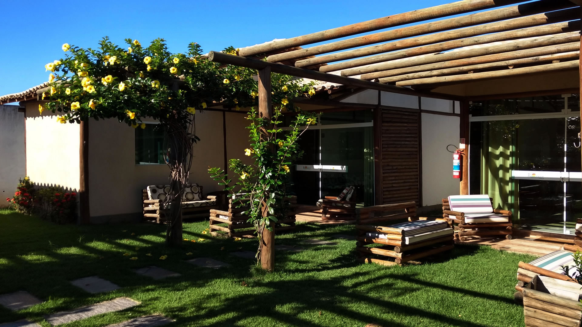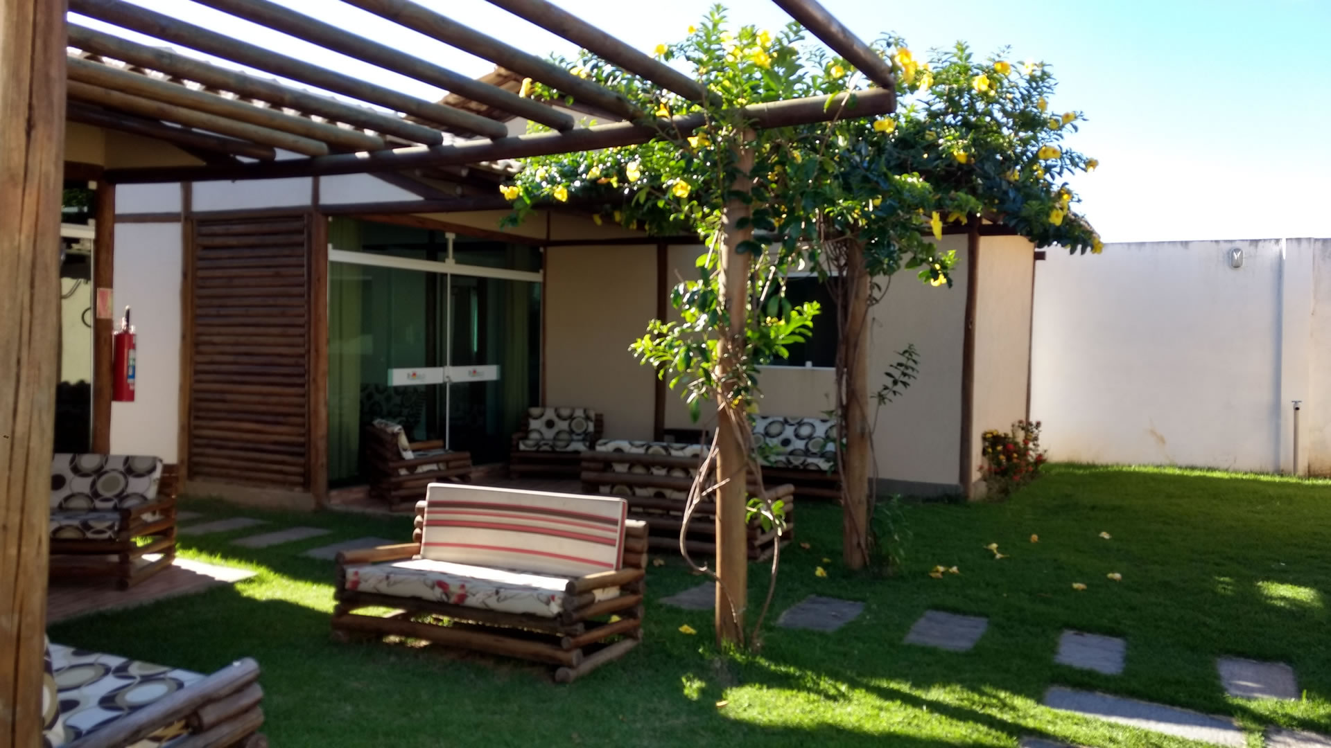 Na parte externa dispomos de uma varanda com jardins, estacionamento, internet wi-fi, parque, piscina adulto infantil, restaurante, deck e ambiente lounge tudo isso com o conforto e o aconchego que você merece.